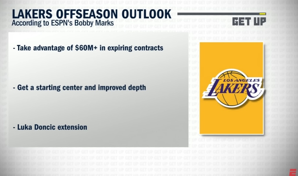 06月04日讯 今日,ESPN薪资专家Bobby Marks在播客节目《GET UP》节目中展望了湖人休赛期的操作。