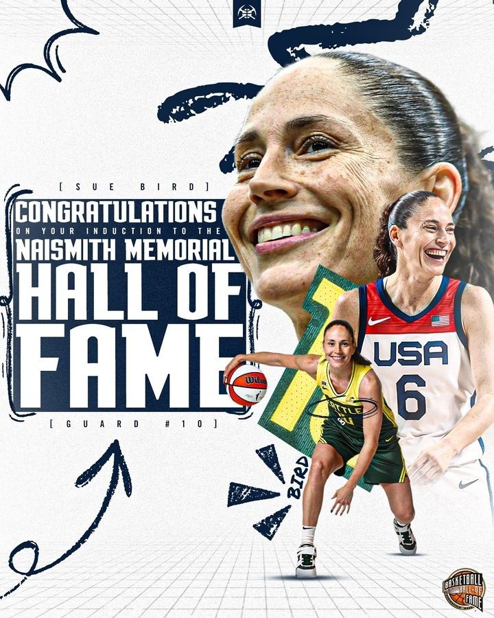 官推写道:“苏-伯德入选名人堂毋庸置疑,我们很荣幸地称她为掘金大家庭的一员。”