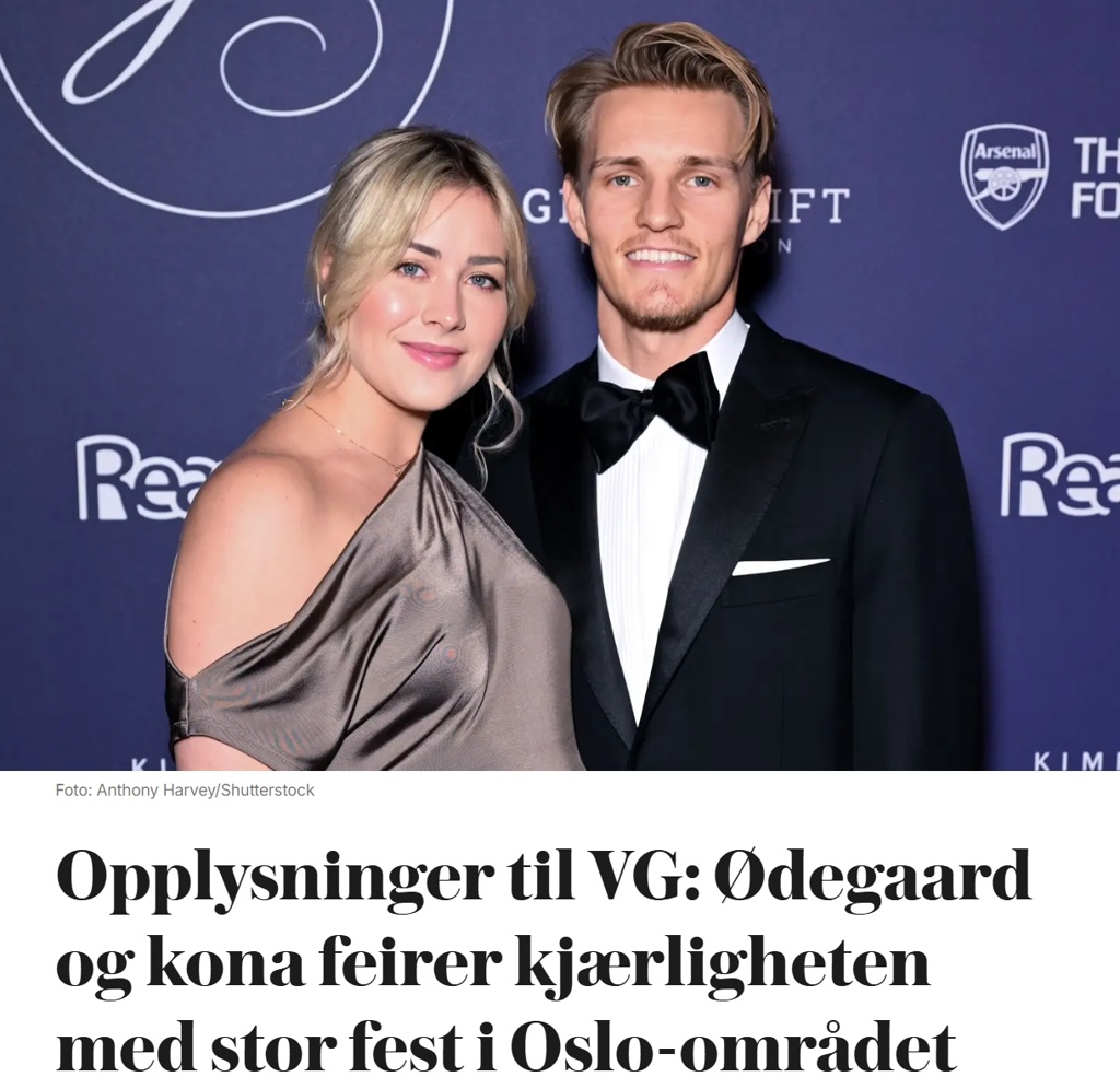 04月26日讯 据挪威媒体VG消息,26岁的阿森纳队长厄德高和他29岁的妻子海伦,将于6月20日-21日在奥斯陆举办为期两天的婚礼派对。
