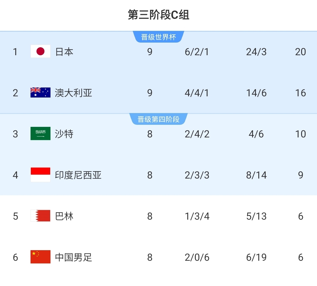 另外,沙特当前积10分净胜球-2。国足本轮打平的话,存在挤掉沙特的理论可能,但是需要后者两连败且抹掉11个净胜球差距。