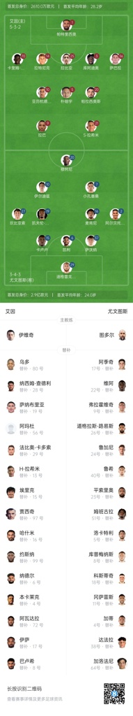 尤文替补:23-平索里奥、38-达法拉、64-加洛法尼、4-加蒂、24-鲁加尼、40-鲁希、5-洛卡特利、8-库普梅纳斯、17-阿季奇、18-科斯蒂奇、26-道格拉斯-路易斯、9-弗拉霍维奇、11-冈萨雷斯、22-维阿、51-姆班古拉