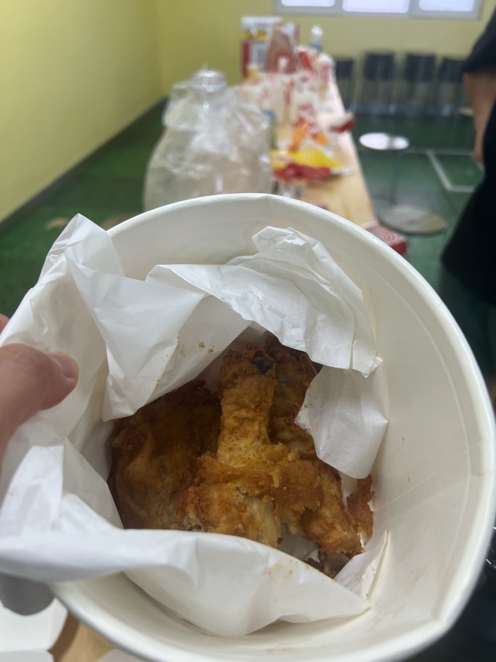 我跟朋友六点半才到,吃到几块热乎的原味鸡,可见人家赛区备了不少。