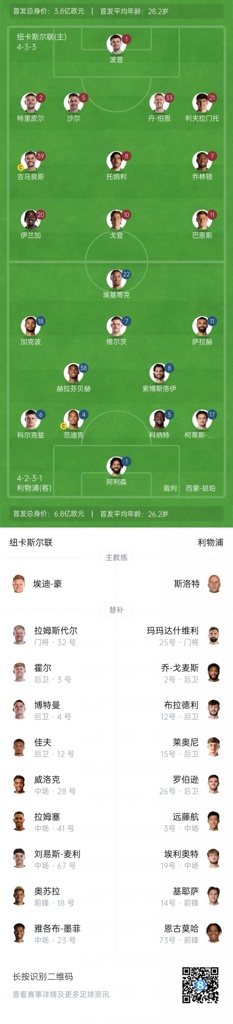 8月26日讯 英超第2轮,纽卡斯尔对阵利物浦,赛前首发公布。麦卡利斯特本场缺战,据悉他的妻子即将分娩。