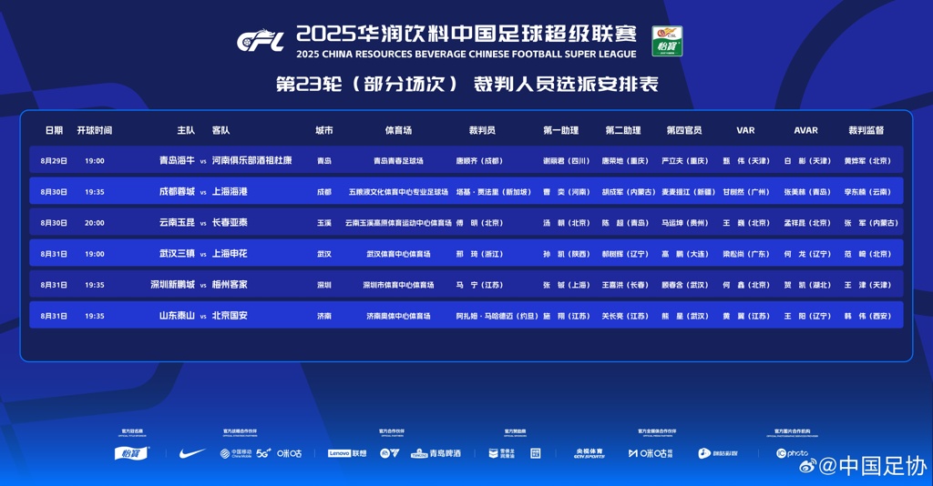 08月29日讯 中超第23轮裁判安排出炉,两场焦点战均由外籍裁判执法。与此前报道一致,约旦名哨马哈德迈大概率主哨本周末“京鲁大战”。