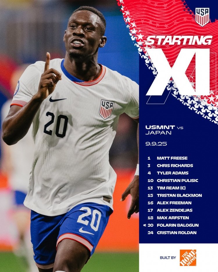 9月10日讯 北京时间今天7点30分,美国将在友谊赛中对阵日本,两队公布了此役的首发阵容。